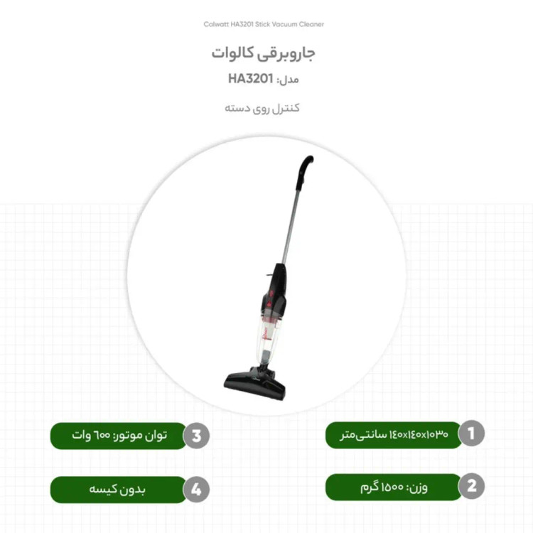 جاروبرقی ایستاده دوحالته کالوات 600 وات با 2 سری و دسته جدا شونده درجه 1 با 6 ماهه بوش سرویس مدل 3201 | ارسال رایگان