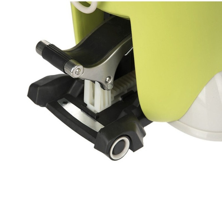 بلندترین حالت دسته 120 سانتیمتر و کوتاه ترین اندازه دسته 92 سانتیمتر دسته ، دارای قفل ایمنی دارای دو عدد سری حوله ای با جذب بالا دارای یک فرچه برای تمیز کردن سطوح دارای قابلیت تنظیم اندازه دسته دارای یک پدال برای چرخش آسان سبد سطل با یک جایگاه برای مایع شستوشو شستوشو و آبگیری زمین با بالاترین سرعت و کیفیت بدون تماس دست با آب