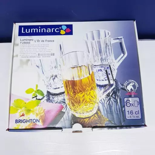 استکان لومینارک مدل برایتون حک شده اصلی دسته دار بسته 6 عددی ساخت امارات مدل گلد فرنس F2565E LUMINARC BRIGHTON | ارسال رایگان