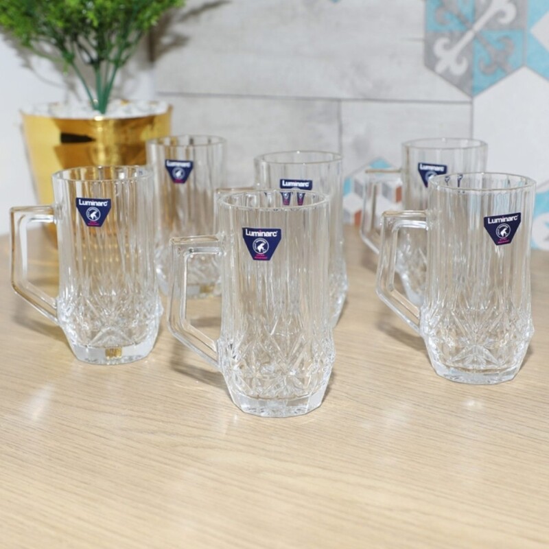 استکان لومینارک مدل برایتون حک شده اصلی دسته دار بسته 6 عددی ساخت امارات مدل گلد فرنس F2565E LUMINARC BRIGHTON | ارسال رایگان