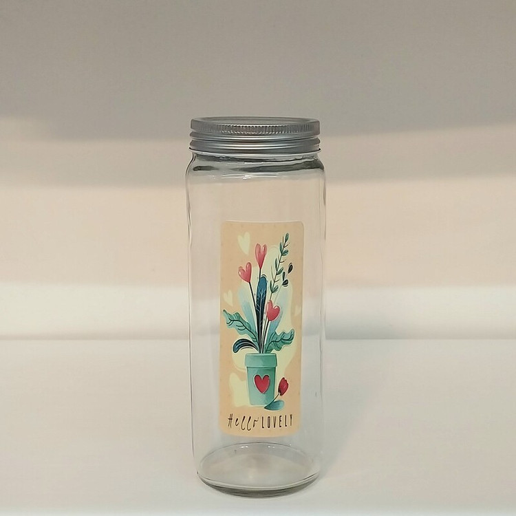 جار استوانه درب کانتینری شیشه ای فانتزی سایز یک ارتفاع 20 سانت | ارسال رایگان
