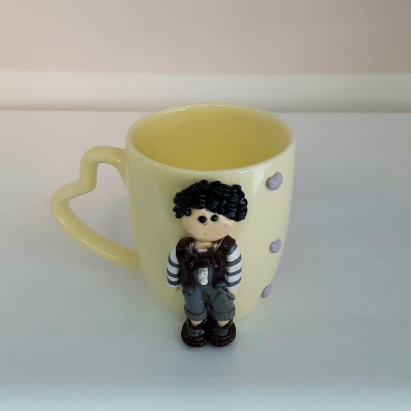 ماگ سرامیکی عروسکی ماگ فانتزی طرح برجسته طراحی زیبا و بسیار جذاب ابعاد ِ ماگ موشی و پسر فرفری، ارتفاع 11 (12×14×11) مناسب استفاده شخصی و کادویی