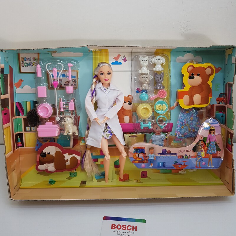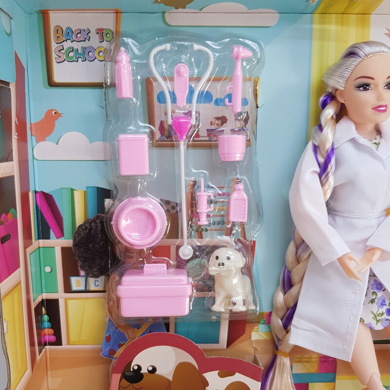- دامپزشک حرفهای: باربی در نقش یک دامپزشک مهربان با لباسهای حرفهای، آماده مراقبت از حیوانات است.