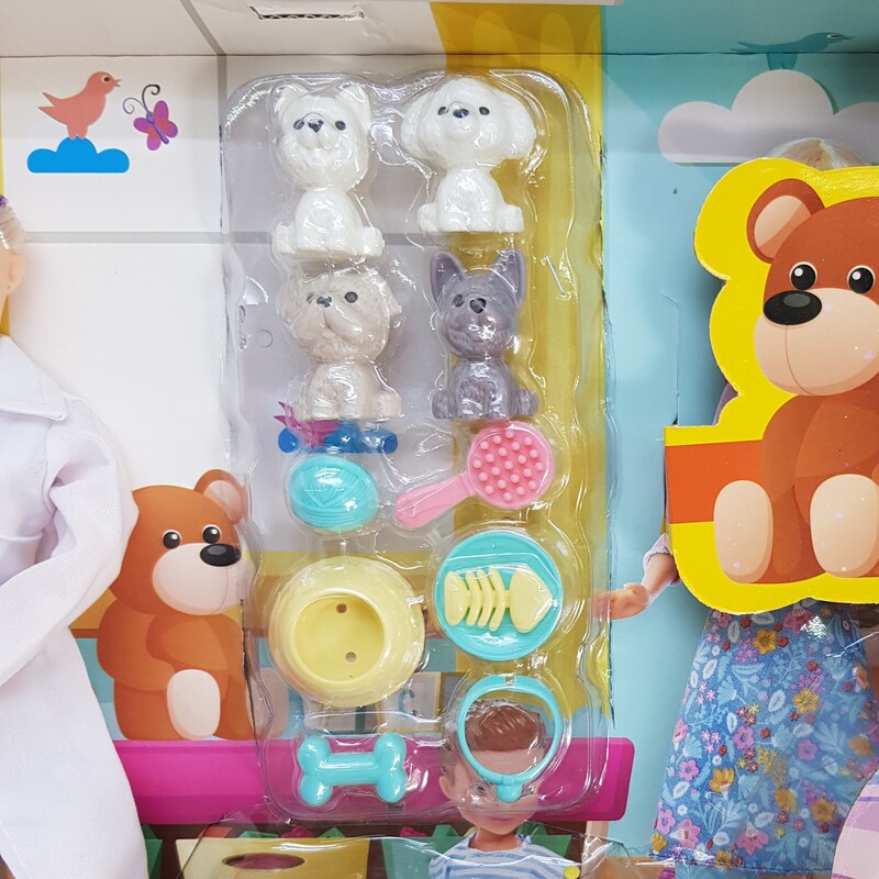 - 20 تکه لوازم جانبی: مجموعهای از لوازم مرتبط با دامپزشکی شامل ابزارهای پزشکی، حیوانات کوچک و دیگر وسایل جانبی.