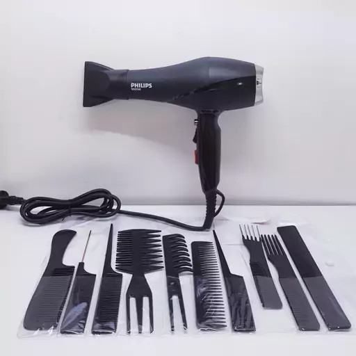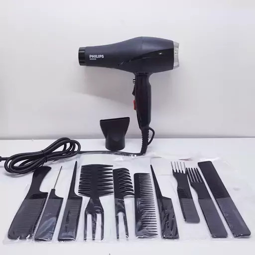سشوار حرفه ای فیلیپس اصلی هلند حک شده 9000 وات سالنی همراه با 10 عدد شانه مدل 1990 | ارسال رایگان